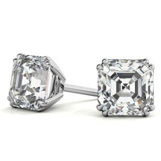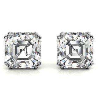 Asscher Double Prong Basket Moissanite Stud Earrings