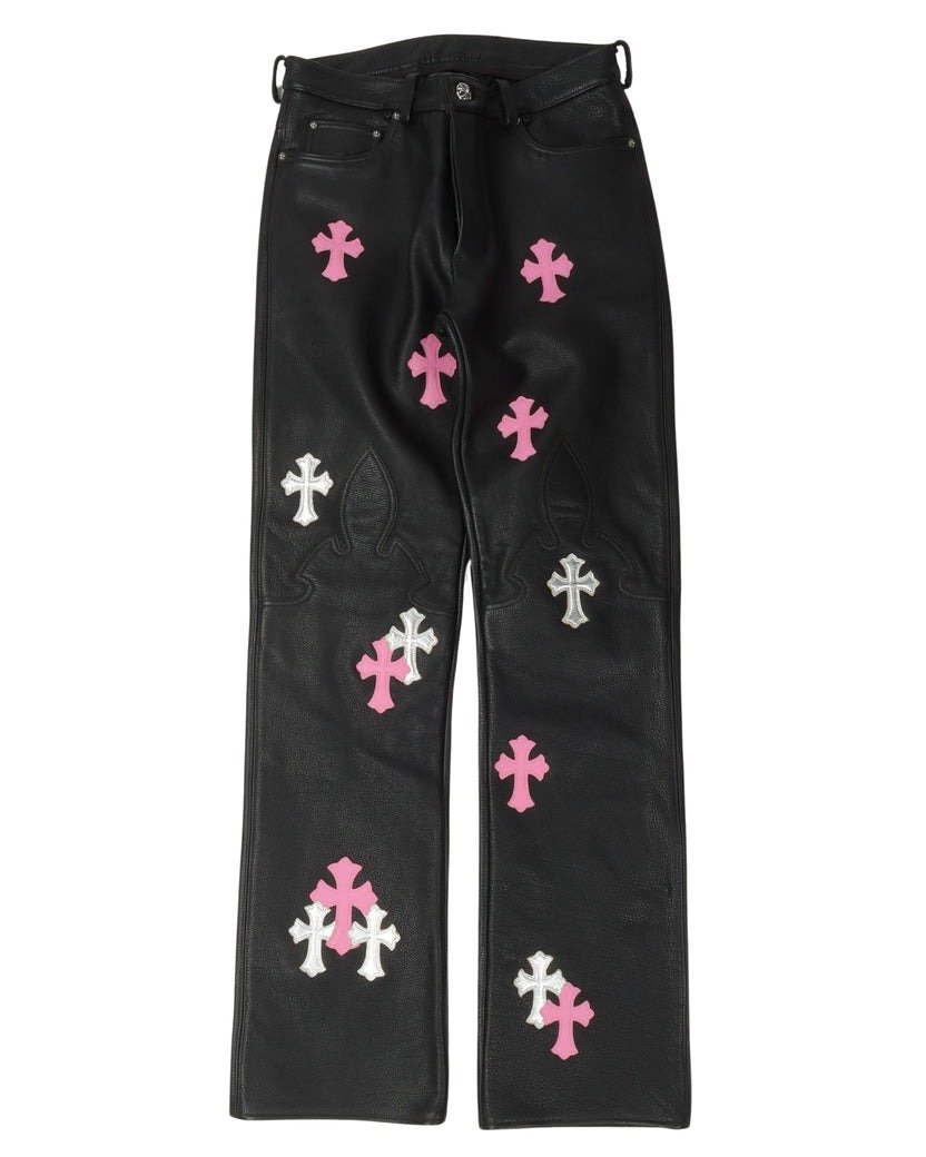 Chrome Hearts Fleur Knee Leather Cross Patch Pants