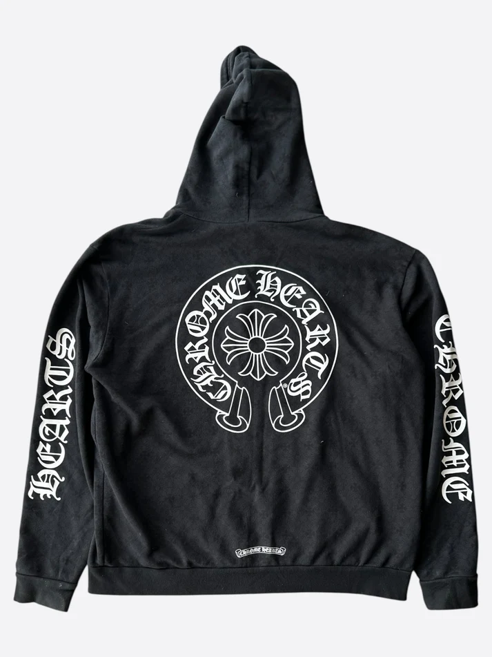 Chrome hearts matty boy black cross jacquard horseshoe logo zip up hoodie