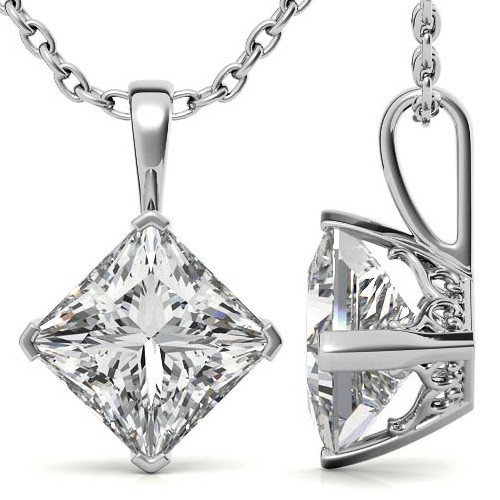 Princess Kite-Set Moissanite Scroll Accented Solitaire Pendant