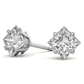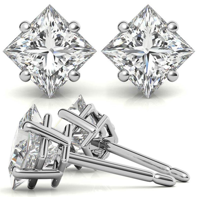 Princess Moissanite Basket “Corners Out” Stud Earrings