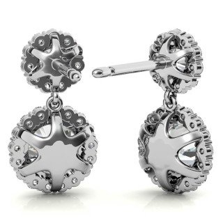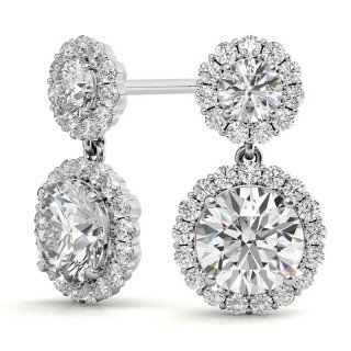 Round Halo Moissanite Drop Earrings
